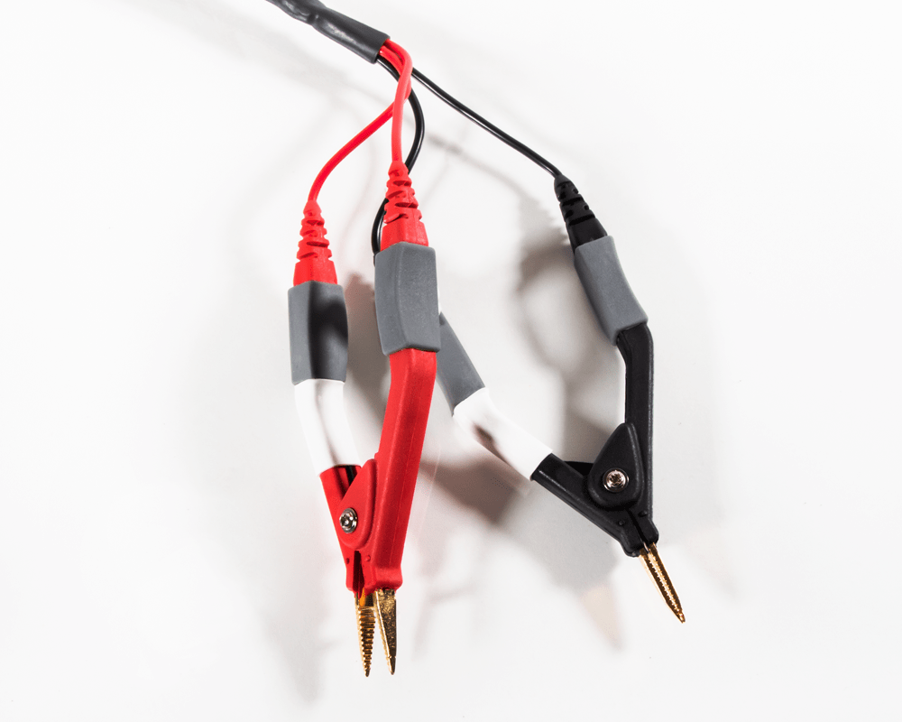 Regardless of the inductance, the test adapters are ideal for all SMD components that can be soldered directly onto the test adapters. However, they can also be used for PCB mounted THD components.