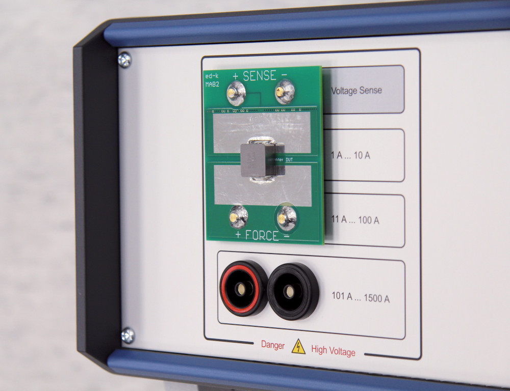 That is why we offer special test adapters for the measurement of low-inductance components for the DPG10 B series, which can be plugged directly into the front panel of the devices. There is a separate test adapter for each current range of the devices. This makes it possible to measure inductance values down to < 100nH if the measurement parameters are optimally selected.