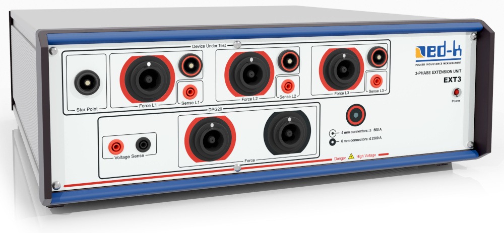 Der Maximalstrom, bis zu dem die 3-phasige Induktivitätsmessung erfolgen kann, hängt vom verwendeten Grundgerät ab. Mit einem DPG10 – 1000B kann die Induktivitätskurve bis etwa 580 Aeff bestimmt werden, mit einem DPG10 – 4000B/F bis etwa 2350 Aeff und mit einem DPG20-10000B/G bis etwa 5880 Aeff. Bei größeren Induktivitätswerten reduziert sich dieser Strom aufgrund der maximal zur Verfügung stehenden Impulsenergie.