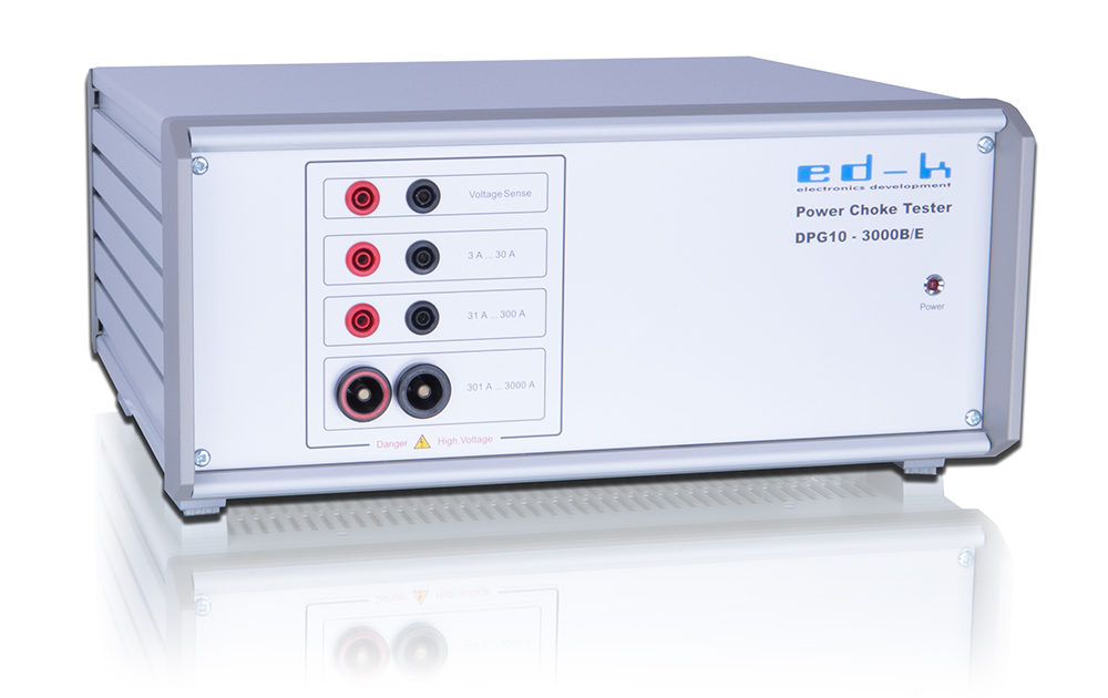 Der Power Choke Tester DPG10 – 3000B/E eignet sich auch für sehr große Leistungsdrosseln. Daher kann diese Variante auch von Kunden aus den Bereichen Bahntechnik, Frequenz-Umrichter, Energietechnik etc. eingesetzt werden. Durch den extrem breiten Anwendungsbereich aller Geräte der DPG10 Serie ist das Gerät jedoch in den kleineren Messbereichen ebenso für kleine, leiterplattenmontierte Drosseln bis in den nH-Bereich geeignet.